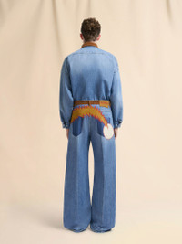 BLUE DENIM TROUSERS WITH VELVET WAISTBAND