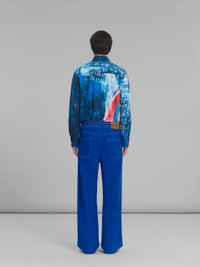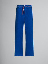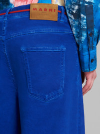 BLUE FLARED 5 POCKET TROUSERS IN STRETCH DENIM