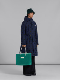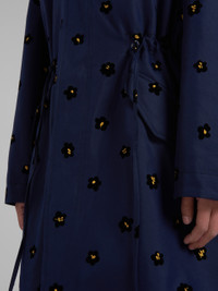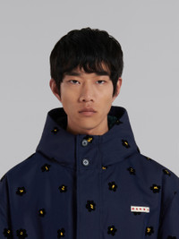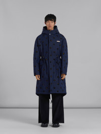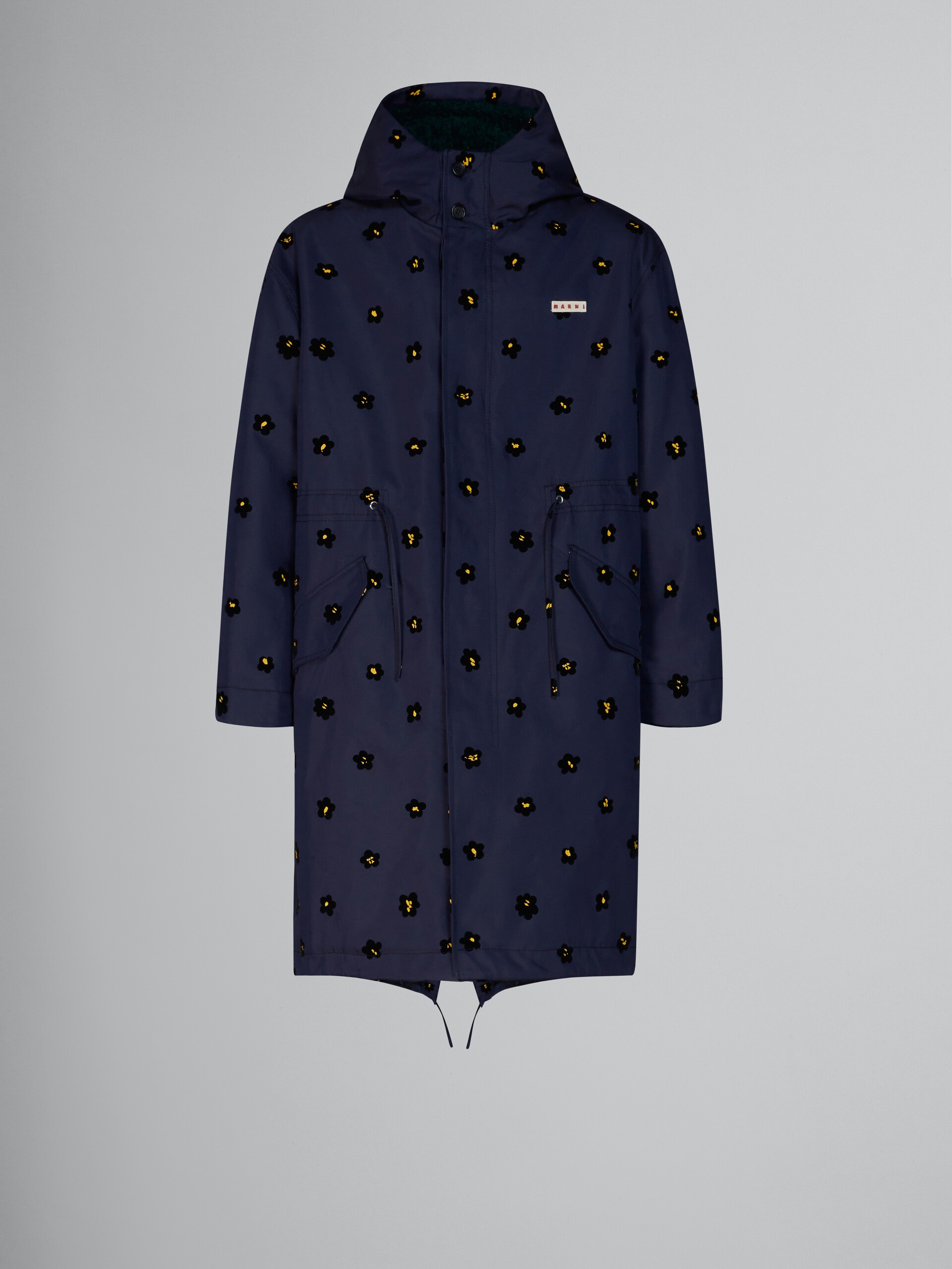 BLUE GABARDINE PARKA WITH FLOCKED DRAFT FLOWER PRINT