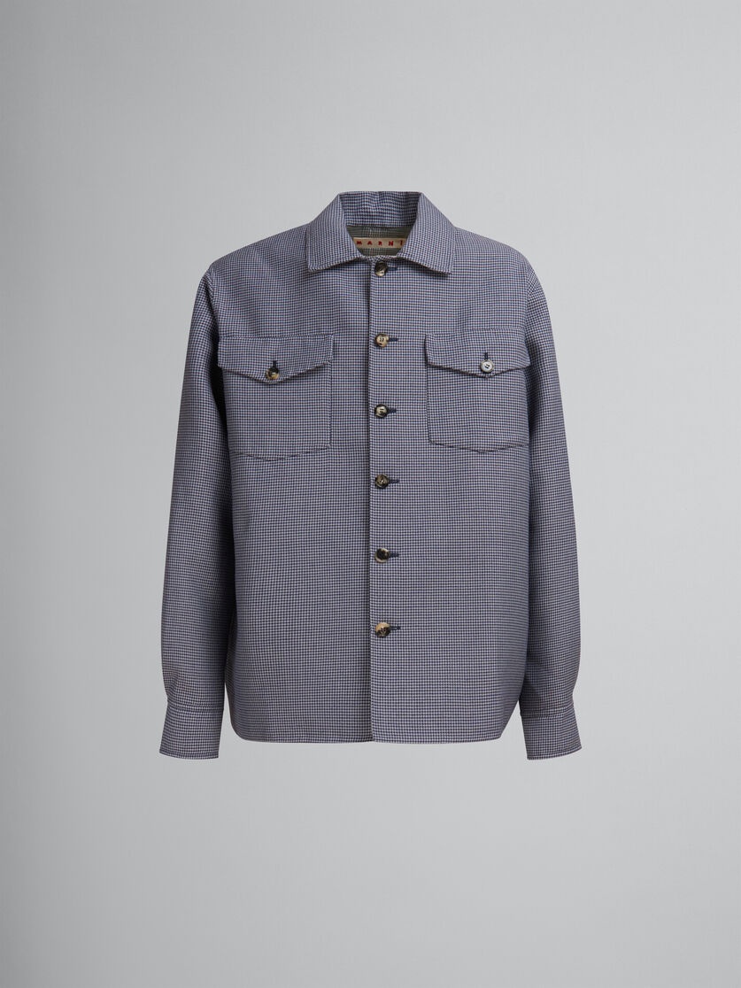 BLUE HOUNDSTOOTH WOOL SHIRT WITH POCKETS