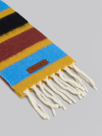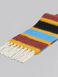 Maxi scarf with colour-block striped design. Crafted from a soft alpaca-wool blend with a cosy brushed finish. Fringe trims and Marni patch. Made in Italy. DETAILS COMPOSITION Primary Fabric: 60% Alpaca Woven 25% Wool Woven 15% Polyamide Woven