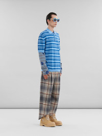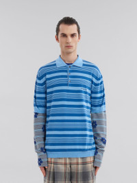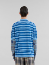 BLUE STRIPED COTTON POLO SHIRT WITH MARNI MENDING