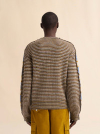 Long-sleeved crew-neck sweater. Half-and-half design with raw-cut external seams. Light knit mohair blend front with horizontal stripes and chunky knit back. Loose fit with crew neck. Made in Italy MODEL GCMG0204Q1UFU193STB26 COMPOSITION Primary Fabric: 67% Mohair Knit 28% Polyamide Woven 5% Wool Knit - Secondary Fabric: 100% Virgin Wool Knit