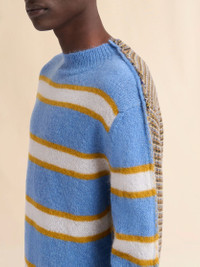 BLUE STRIPED MOHAIR AND WOOL HALF-AND-HALF SWEATER