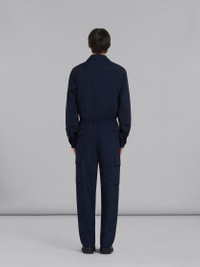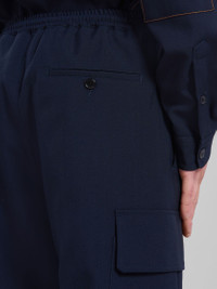 BLUE TROPICAL WOOL CARGO PANTS WITH STITCHING