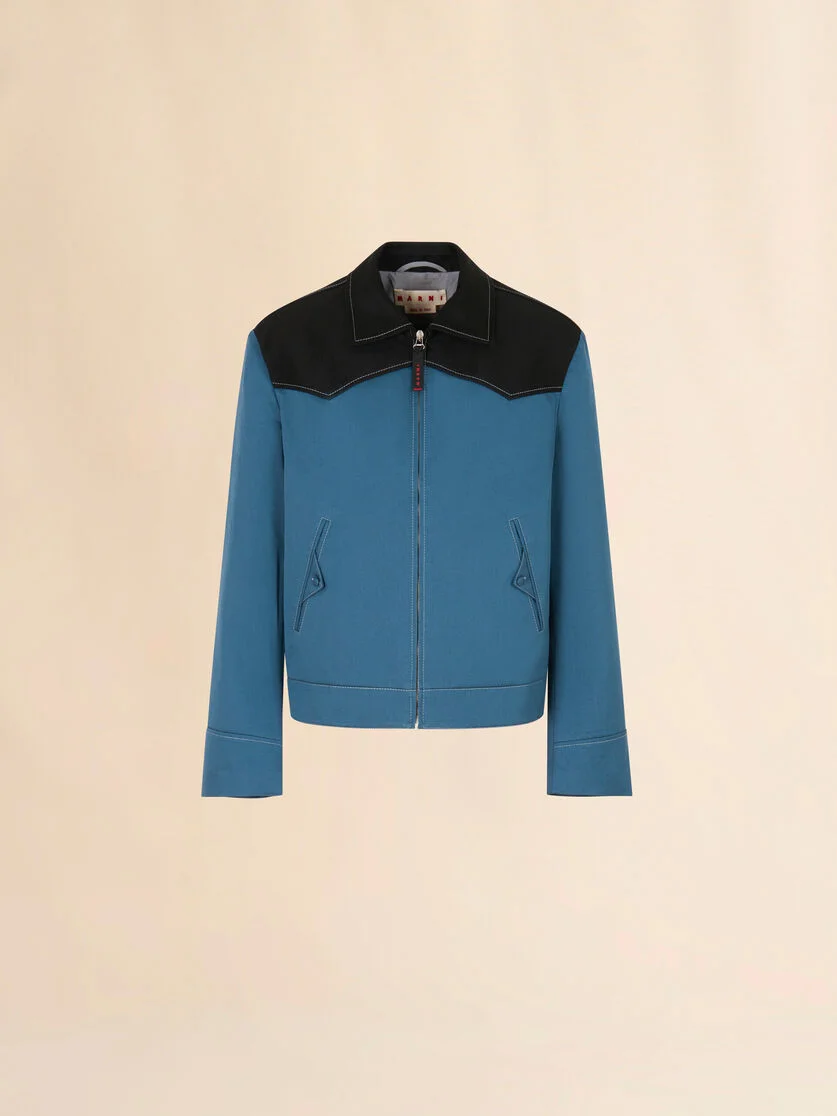 BLUE WATER-REPELLENT GABARDINE JACKET WITH CONTRAST YOKES