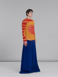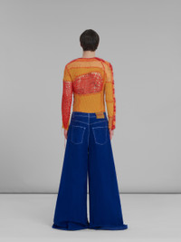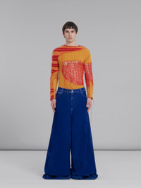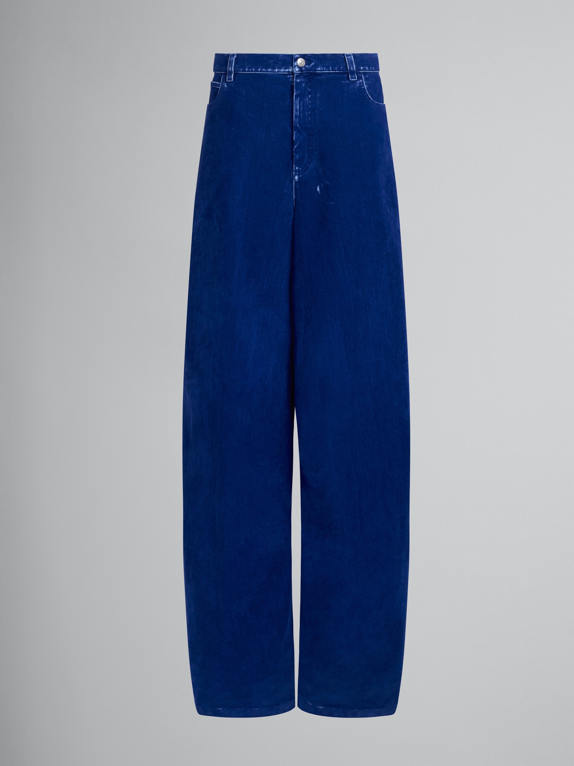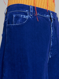 BLUE WIDE 5 POCKET TROUSERS IN FLOCKED DENIM