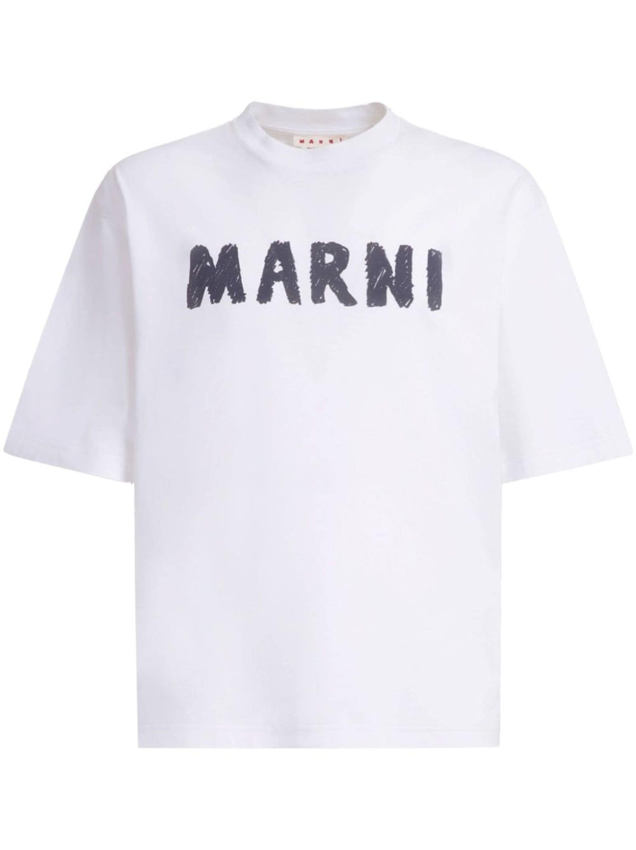 white cotton logo print at the chest crew neck short sleeves straight hem Size & Fit Model Measurements: Bust: 0cm Height: 0cm Hips: 0cm Waist: 0cm Fabric and Care Designer Style ID: HUMU0223EPUSCX24 Designer Colour: LOW01 WHITE Composition: Cotton 100% Washing instructions: Read Manufacturer Guidelines Made in Italy