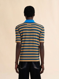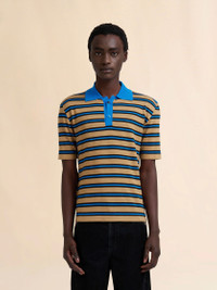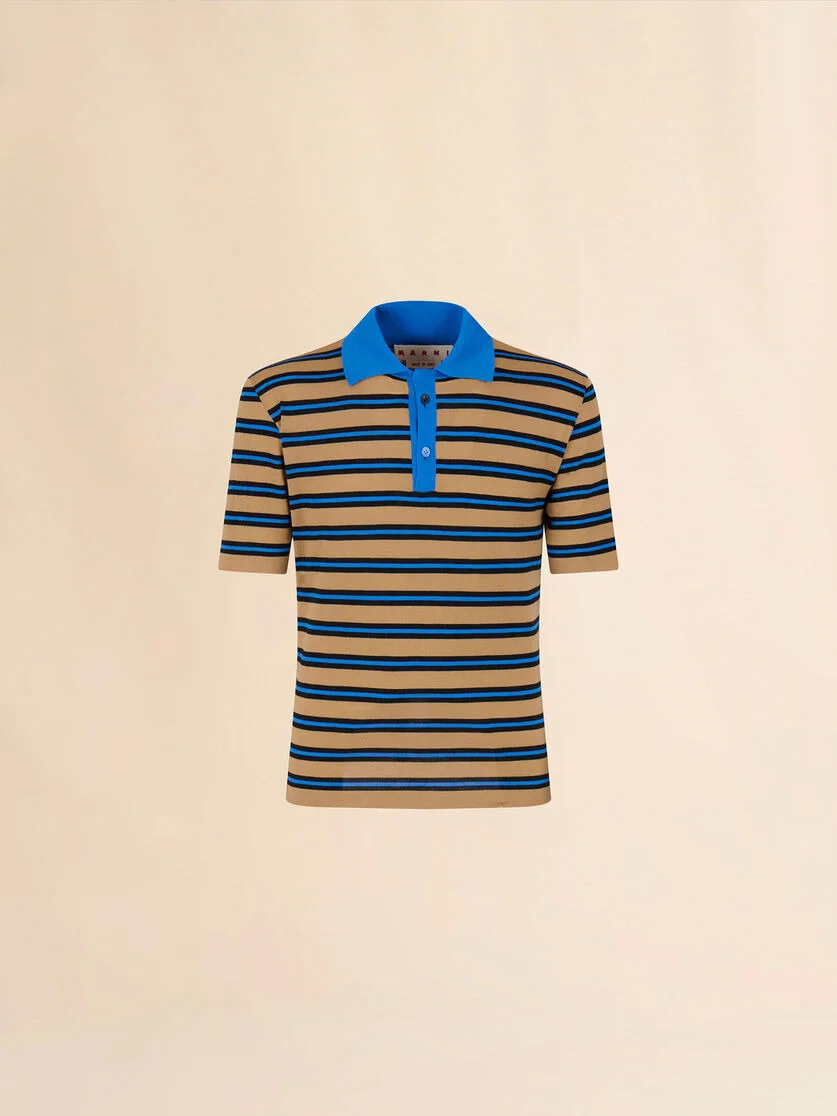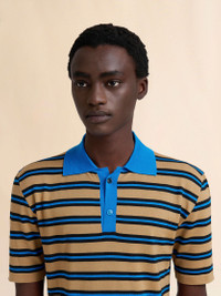 BROWN AND BLUE STRIPED WOOL POLO SHIRT