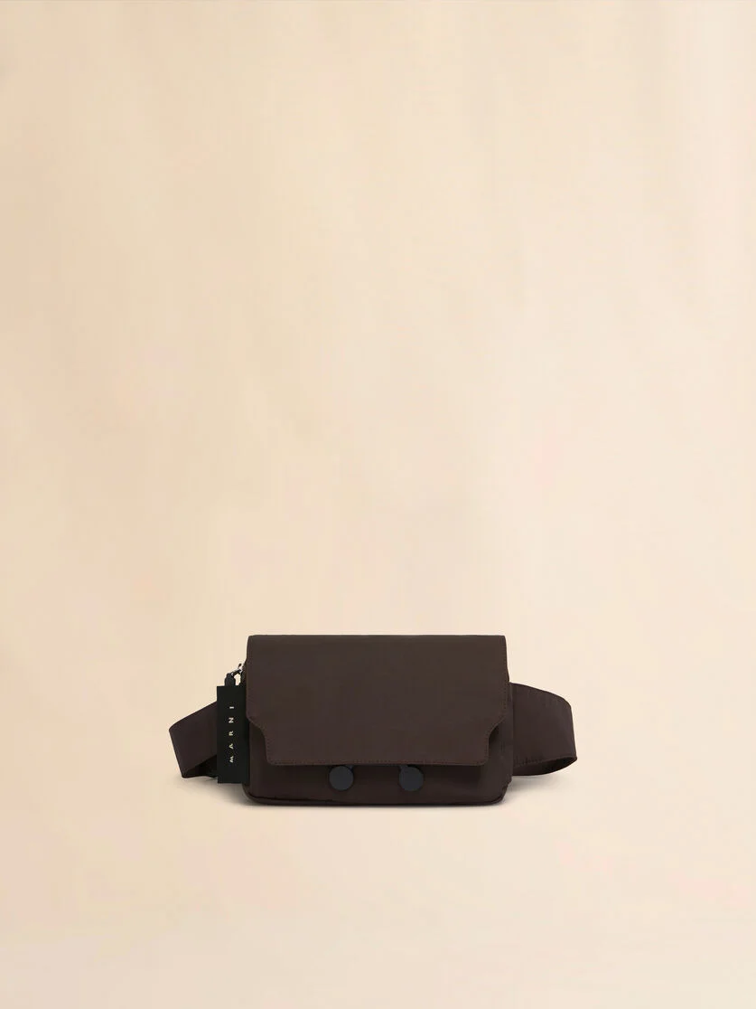 Cityscape belt bag made of Cordura® fabric, waterproof and highly durable. Front flap with satin-finish magnetic closure and engraved Marni lettering. Flat external pocket on the back. Adjustable belt and main zipped compartment. Large label with Marni logo on the side. MODEL MUMQ0023A0P818400M80 COMPOSITION Body: 100% Polyamide-Nylon - Application: 100% Polyester - Lining: 100% Polyamide-Nylon - Inside: 100% Calf Leather - Inside: 100% Polyamide-Nylon - Metallic Parts: 100% Plastic - Metallic Parts: 100% Polistyrene - Metallic Parts: 100% Brass - Metallic Parts: 100% Zama