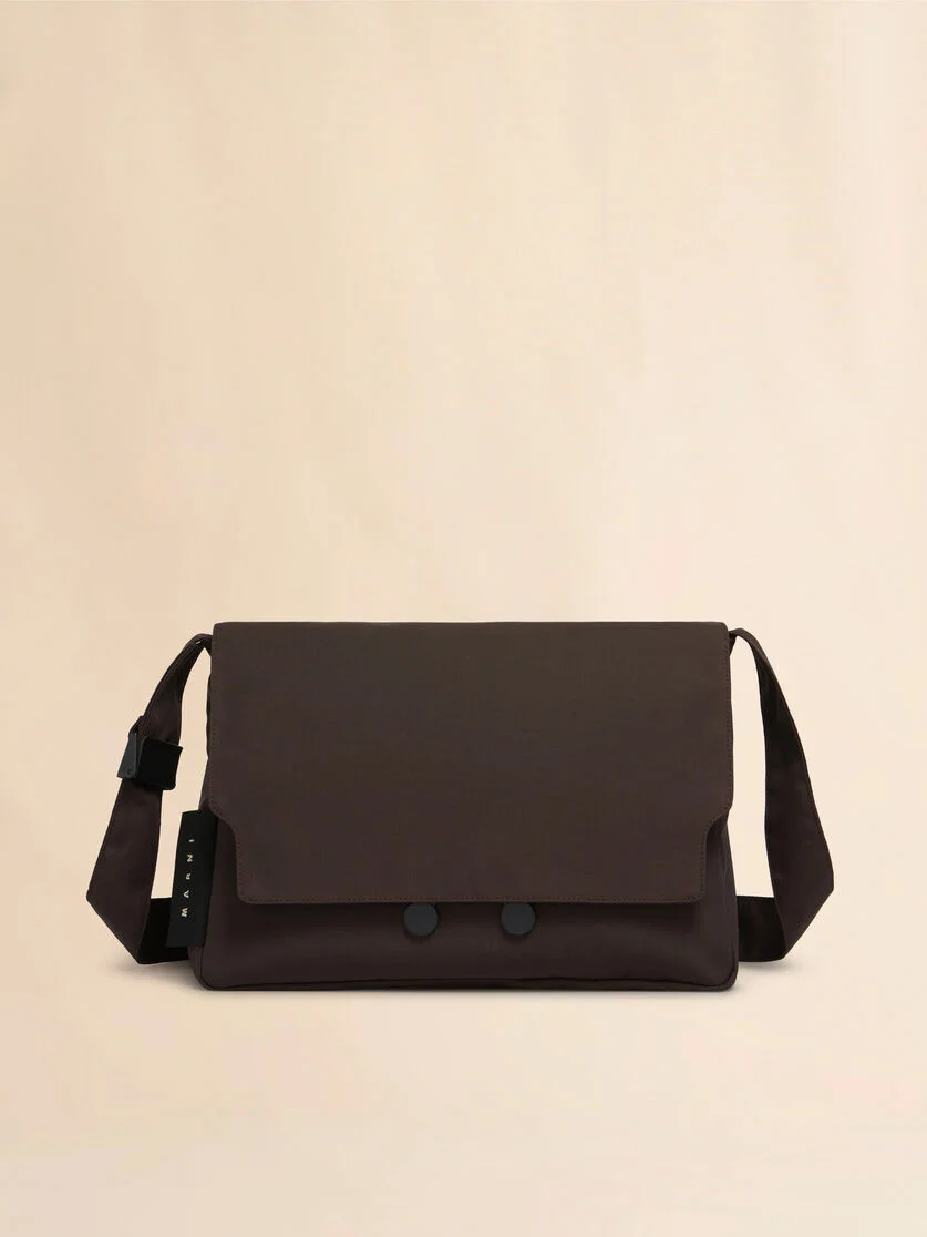 Cityscape crossbody bag made of Cordura® fabric, waterproof and highly durable. Front flap with satin-finish magnetic closure and engraved Marni lettering. It features an external zipped pocket under the flap and an adjustable shoulder strap. Zip closure. Large label with Marni logo. MODEL SBMQ0112A0P818400M80 COMPOSITION Body: 100% Polyamide-Nylon - Application: 100% Polyester - Lining: 100% Polyamide-Nylon - Inside: 100% Calf Leather - Inside: 100% Polyamide-Nylon - Metallic Parts: 100% Plastic - Metallic Parts: 100% Polistyrene - Metallic Parts: 100% Brass - Metallic Parts: 100% Zama