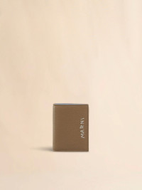 Bifold wallet made from milled calfskin leather. Hand-stitched Marni Mending logo on the front. Snap button closure. Snap button coin pocket, note compartment, and four card slots. Made in Italy MODEL PFMI0098U0P653300V49 COMPOSITION Body: 100% Calf Leather - Contrast: 100% Polyester - Inside: 100% Ovine Leather - Lining: 100% Viscose-Rayon