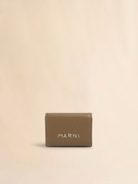 Trifold wallet crafted from milled calfskin leather. Hand-stitched Marni Mending logo on the front. Snap button closure. Snap button coin pocket, note compartment, and six card slots. Made in Italy MODEL PFMI0097U0P653300V49 COMPOSITION Body: 100% Calf Leather - Contrast: 100% Polyester - Lining: 100% Viscose-Rayon - Inside: 100% Ovine Leather