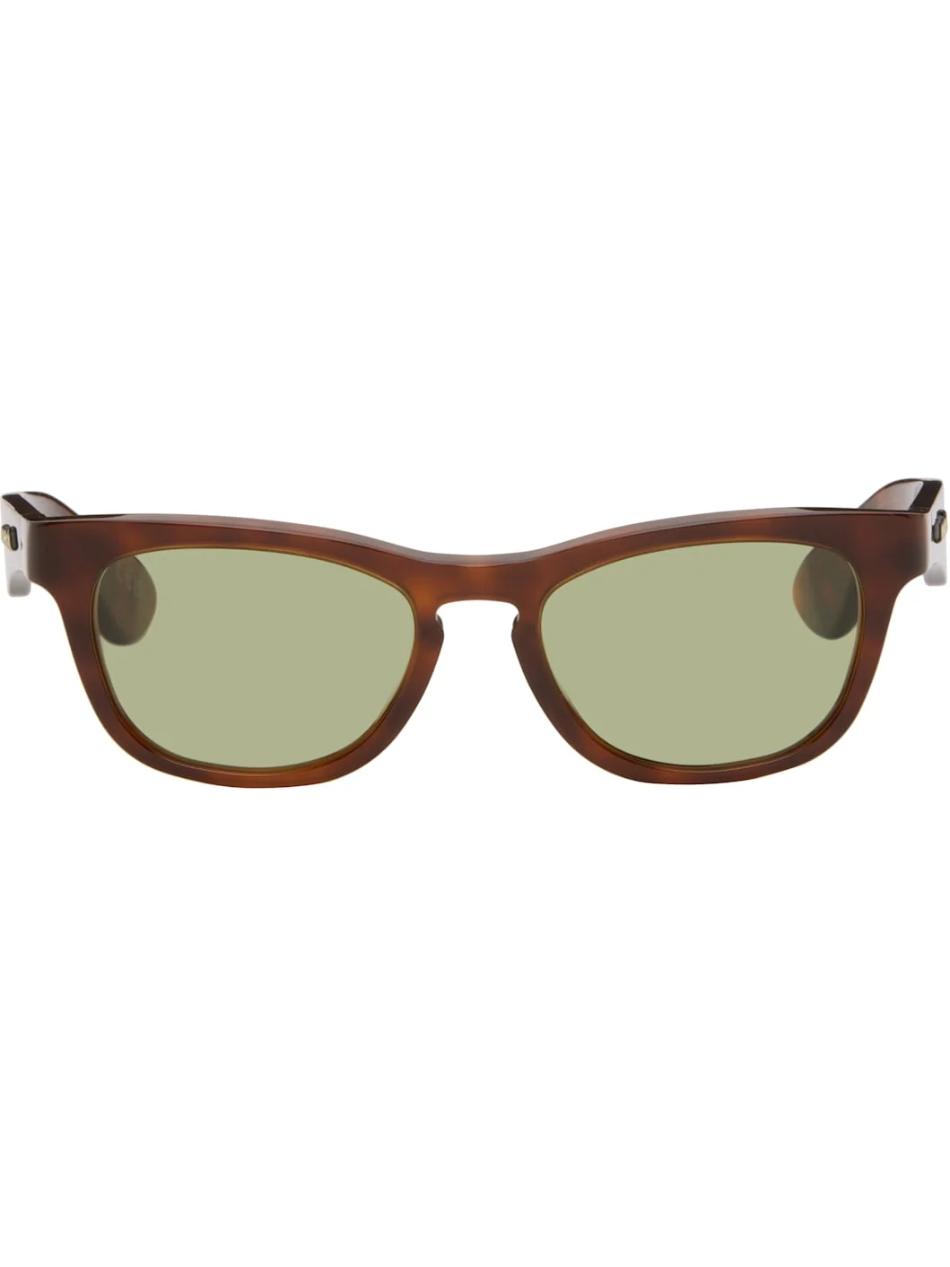 Handcrafted rectangular semi-transparent tortoiseshell acetate-frame sunglasses. · Green lenses · Keyhole bridge · Integrated nose pads · Logo embossed at temples · Exposed core wires · Includes pouch · Size: 52.19 135 Part of the Marni x RETROSUPERFUTURE collaboration. Supplier color: Havana Acetate. Made in Italy 261379M134011