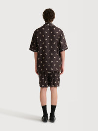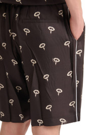 BROWN SILK TWILL PAJAMA SHORTS WITH FLORAL PRINT