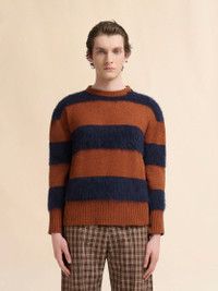 BROWN WOOL AND MOHAIR SWEATER WITH STRIPED PATTERN