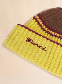 Fisherman's rib beanie knitted from a wool and cashmere blend. Color-block design with striped detailing. Embroidered cursive Marni logo on the turn-up. Made in Italy MODEL CLZC0180Q0UFZ411CBM37