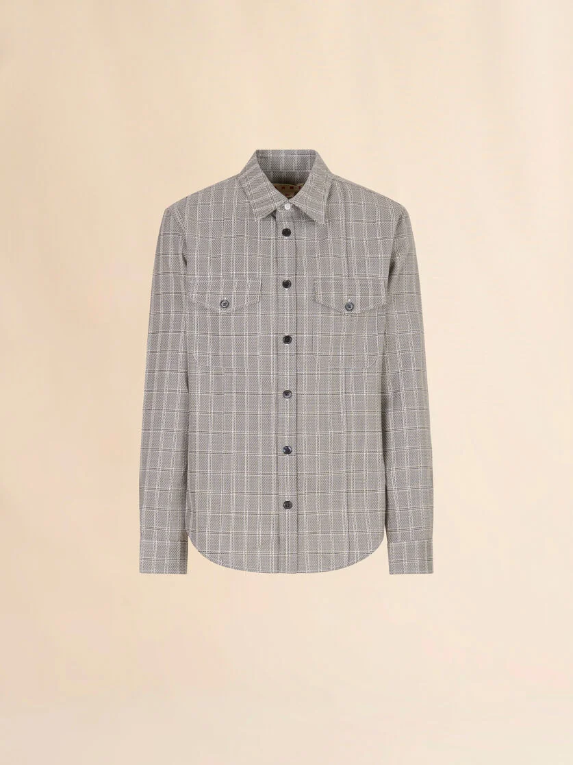 Long-sleeved shirt made from resistant virgin wool fabric, spun from high-twist thread with a yarn-dyed tartan checked pattern. Regular fit with buttoned flap pockets on the chest. Marni flag logo patch on the back. Made in Italy MODEL CUMU0368X0UTWA45CHM75