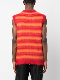 brushed-mohair striped vest Highlights - Bright red/light orange - Mohair blend - Brushed finish - Solid border - V-neck - Sleeveless - Straight hem Made in Italy Composition Mohair 67%, Polyamide 28%, Wool 5% SIZE & FIT Model measurements Height 6 ft 0 in(1.84 m) Bust/Chest 36.22 in(92 cm) Hips 35.43 in(90 cm) Waist 26.77 in(68 cm) Washing instructions Dry Clean Only