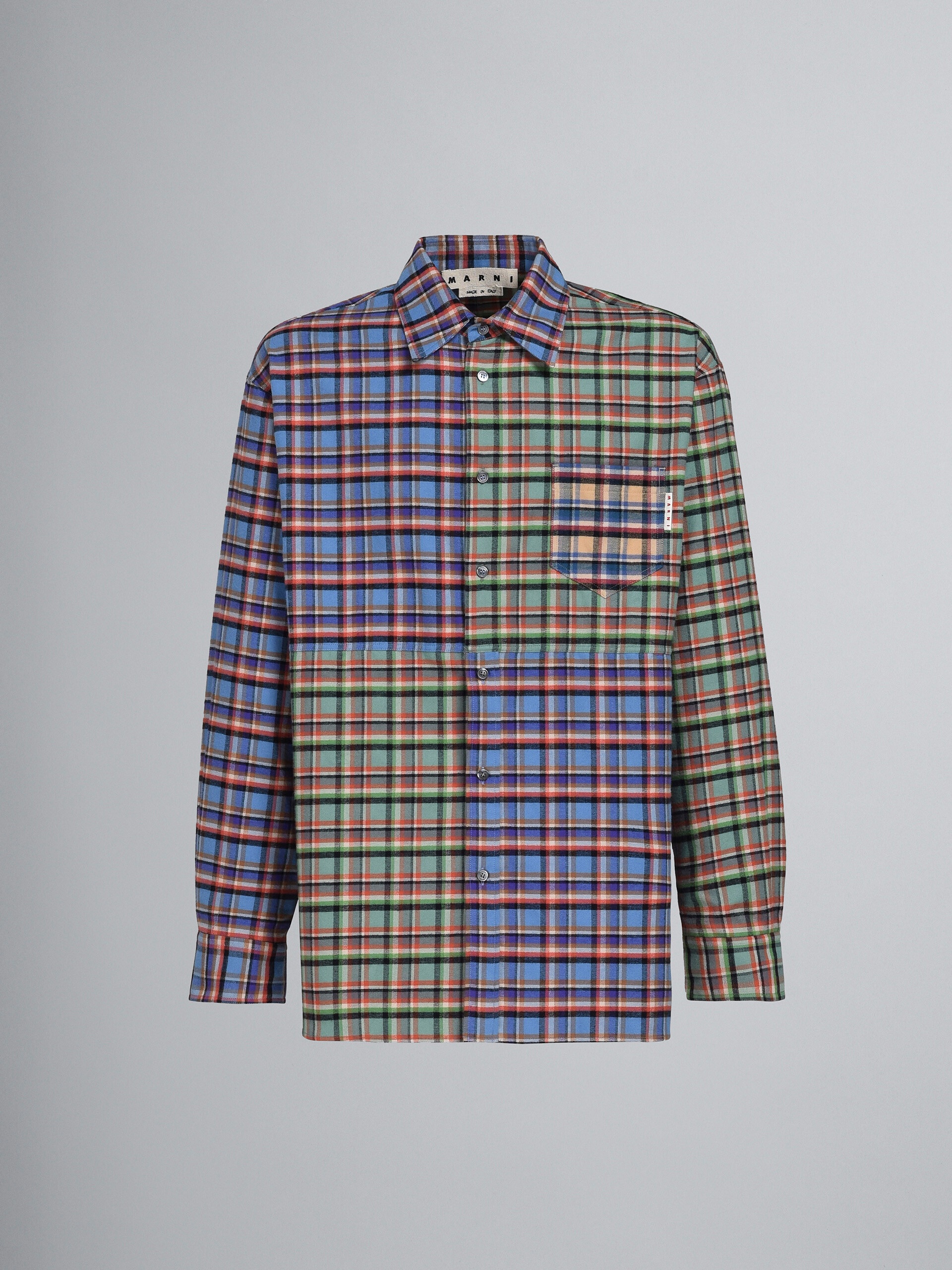 Cotton flannel shirt. Colourblock check design. Spread collar; long-sleeved. Mother-of-pearl buttons; chest pocket. Made in Italy. DETAILS FIT The shirt has a loose fit. The model is 188 cm tall. The model is wearing a size 48 IT. COMPOSITION Primary Fabric: 100% Cotton Woven