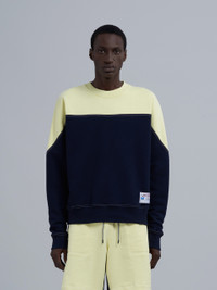 Loopback jersey sweatshirt. Crewneck; colourblock design. Maxi topstitching in contrasting colour. Ribbed collar, cuffs and hem. DETAILS FIT The sweatshirt has a loose fit. The model is 188 cm tall. The model is wearing a size 48 IT. COMPOSITION Primary Fabric: 100% Cotton Knit