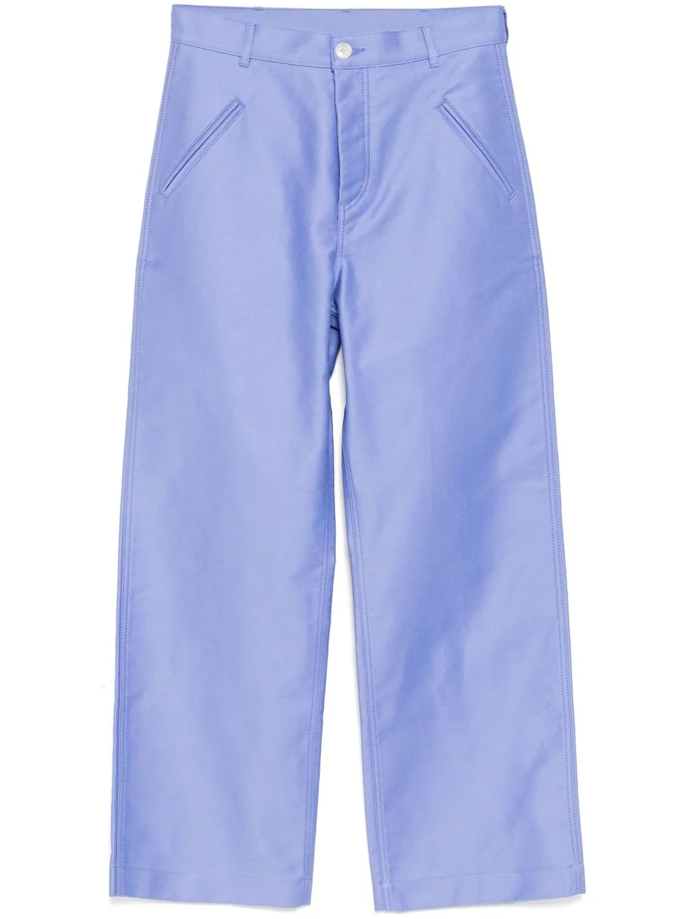 compact trousers Highlights - Lilac purple - Front button fastening - Two side slit pockets - Two rear jetted pockets - Belt loops Made in Italy Composition Cotton 100% SIZE & FIT Model measurements Height 6 ft 2 in(1.88 m) Bust/Chest 34.25 in(87 cm) Hips 34.64 in(88 cm) Waist 26.77 in(68 cm)