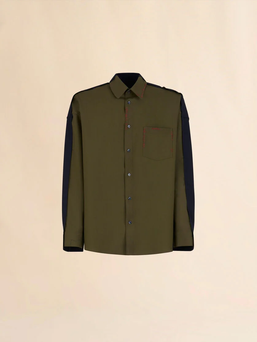 DEEP GREEN TROPICAL WOOL SHIRT WITH CONTRAST BACK