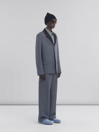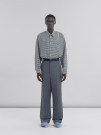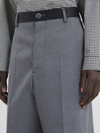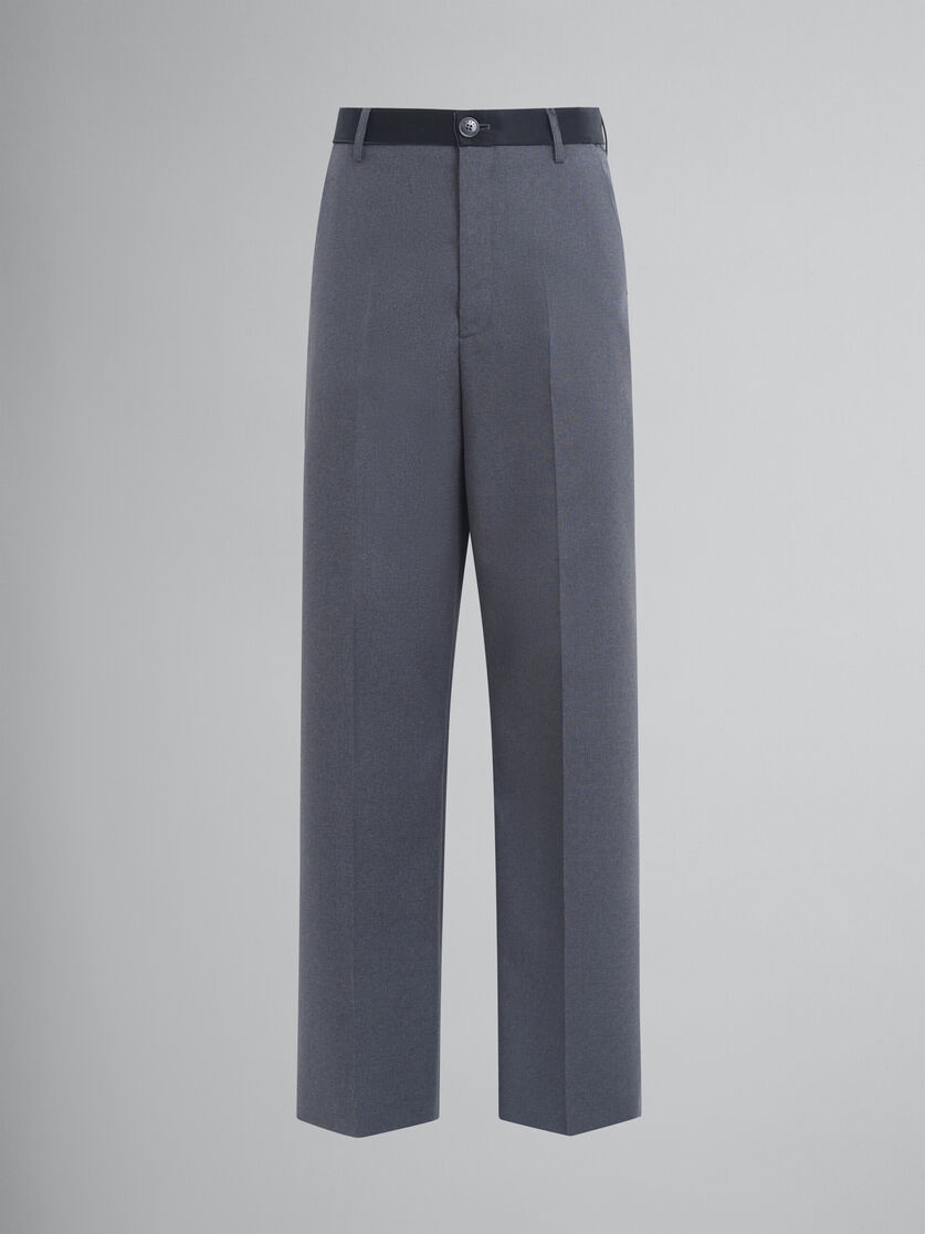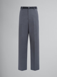 GREY TROPICAL WOOL TROUSERS WITH CONTRASTING WAISTBAND