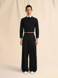 Formal wide-leg trousers made from organic cotton poplin with a compact feel. Styled with voluptuous front pleats. Relaxed mid-rise fit. Concealed zip and hook closure. Side pockets and back welt pockets. Made in Italy MODEL PUMU0295S0TCY6500N99 COMPOSITION Primary Fabric: 100% Cotton Woven - Pocket Lining: 100% Cotton Woven