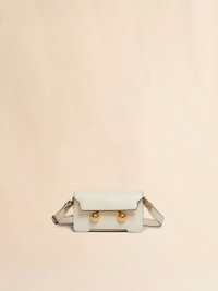 Trunkaroo rectangular mini shoulder bag crafted from calfskin leather. Front flap with magnetic closure, featuring engraved Marni lettering and oversized stud details. Contoured base on the front and back. One compartment with inside pocket. Lined in nappa leather. Detachable and adjustable buckled shoulder strap: can also be worn as a clutch. This product is made using leather from a Leather Working Group medalled tannery. LWG supports more responsible leather manufacturing across the globe. Made in Italy MODEL SBMP0193U0P694800W12 COMPOSITION Body: 100% Calf Leather - Lining: 100% Ovine Leather - Metallic Parts: 100% Brass - Metallic Parts: 100% Steel