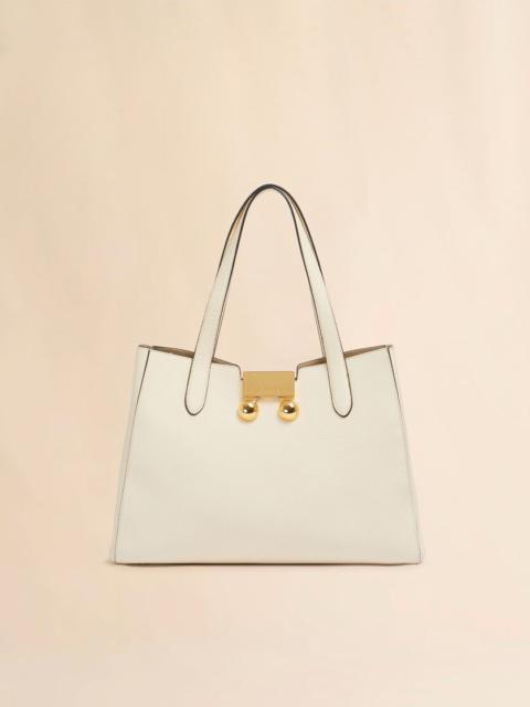 Trunkaroo Tote bag made of pebbled calf leather. Small size. Double handle and adjustable, removable leather shoulder strap. Oversized magnetic closure featuring engraved Marni lettering and two visually impactful metal stud details. Accordion-style design with suede interior and central zip pocket. Gold hardware. Made in Italy MODEL BMMP0150U0P818500W12 COMPOSITION Body: 100% Calf Leather - Contrast: 100% Calf Leather - Inside: 100% Calf Leather - Lining: 100% Calf Leather - Metallic Parts: 100% Zama - Metallic Parts: 100% Brass - Metallic Parts: 100% Steel