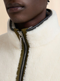 CREAM SHEARLING JACKET WITH LEATHER PIPING
