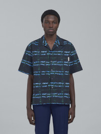 Short-sleeved bowling shirt. Cuban collar. Straight-cut hem. Mother-of-pearl button fastening. Boxy fit. Slightly rounded chest pocket. Ecru satin logo label on the pocket. DETAILS COMPOSITION Primary Fabric: 100% Cotton Woven