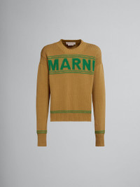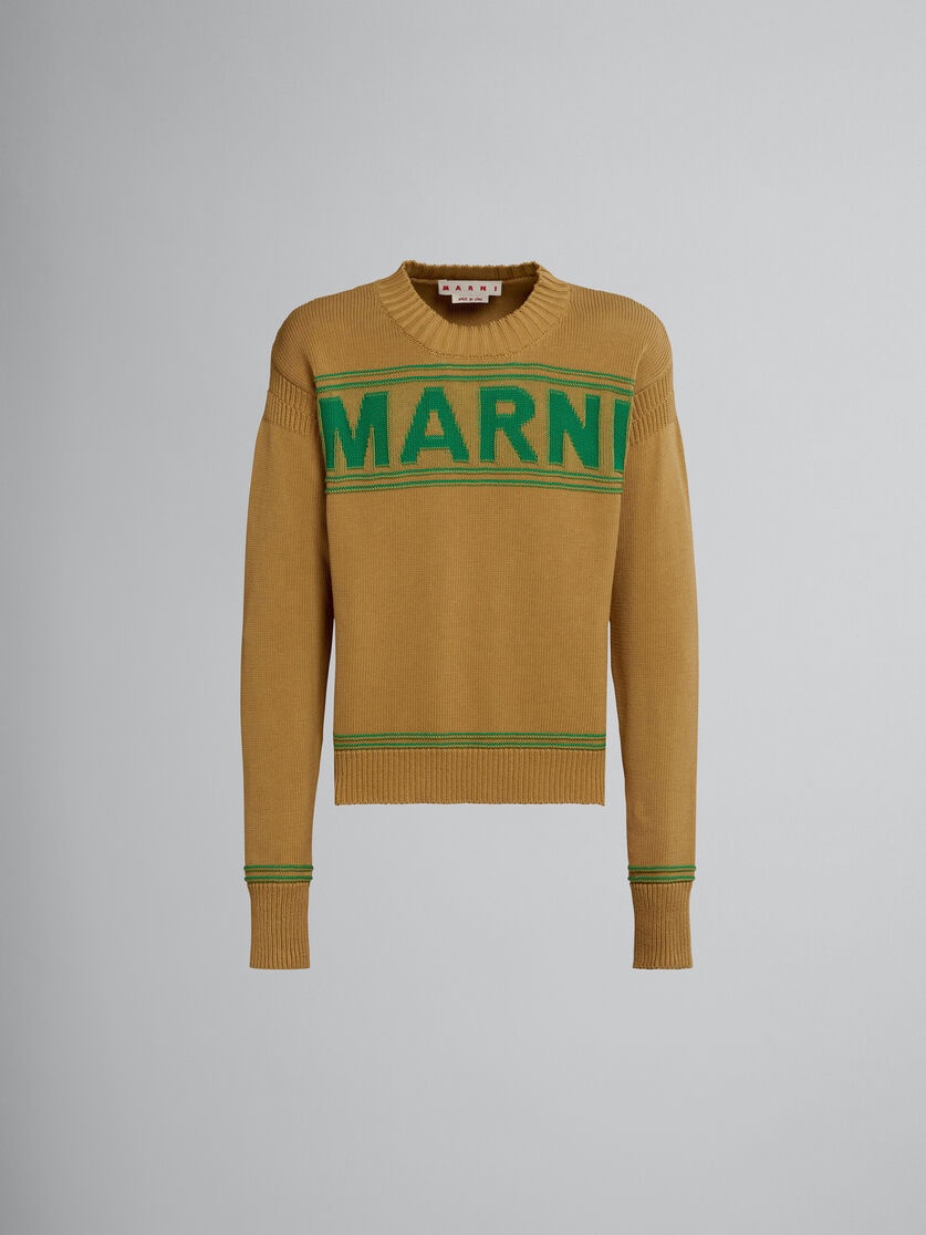 DARK YELLOW COTTON-KNIT SWEATER WITH INLAID LOGO