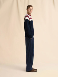 DEEP BLUE COTTON JUMPER WITH CONTRAST STRIPE