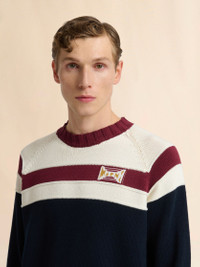 Crew-neck jumper knitted from cotton, featuring a colour-block yoke with a contrast stripe. Marni logo, jacquard-woven to look like a patch. Relaxed fit with chunky ribbed trims. Made in Italy MODEL GCMG0491Q0UFC662RGB84