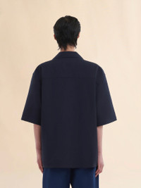 DEEP BLUE TROPICAL WOOL BOWLING SHIRT WITH MARNI MENDING