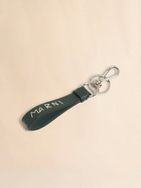 DEEP GREEN LEATHER KEYRING WITH MARNI MENDING EMBROIDERY