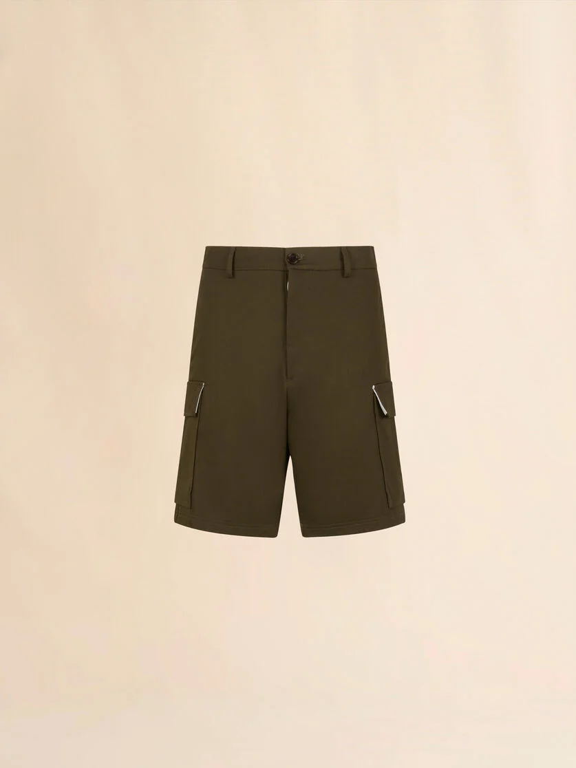 DEEP GREEN ORGANIC GABARDINE CARGO SHORTS