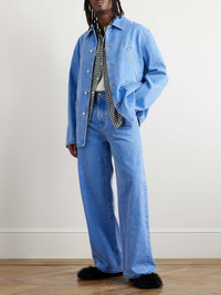 Marni’s collections are celebrated for their eclectic feel. This jacket has been made in Italy from bleached denim that’s embroidered with the label’s logo across the left shoulder and detailed with two slash pockets at the chest for an unexpected touch. Size & Fit - Intended to be oversized; we recommend sizing down if you prefer a closer fit - Mid-weight, non-stretchy denim - Model is shown wearing a M - Model measures: chest 38"/ 96cm, height 6'0"/ 183cm Details & Care - Blue denim - Button fastenings - 100% cotton - Machine wash