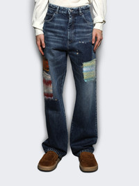 Denim Patch Straight Leg Jeans Blue