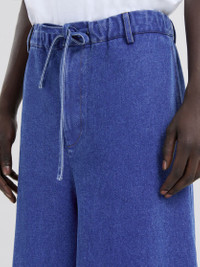 Bleached organic denim jeans. Relaxed fit and low elasticated drawstring waist. Welt pockets on the back. Zip and tack button closure. Made in Italy MODEL PUJU0104A0USCU83BDB60 FIT The model is 6' 1". The model is wearing size 32 IT. COMPOSITION Primary Fabric: 100% Cotton Woven - Pocket Lining: 65% Polyester Woven 35% Cotton Woven