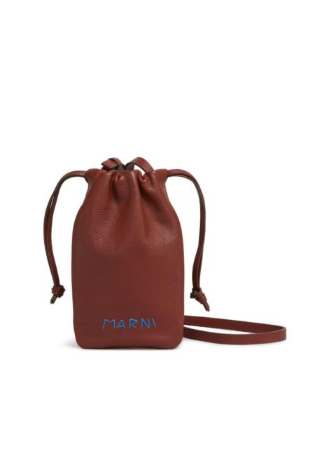 drawstring leather wallet Highlights - Burgundy - Drawstring closure - Single shoulder strap - Embroidered logo detail Made in Italy Composition Outer: Calf Leather 100%