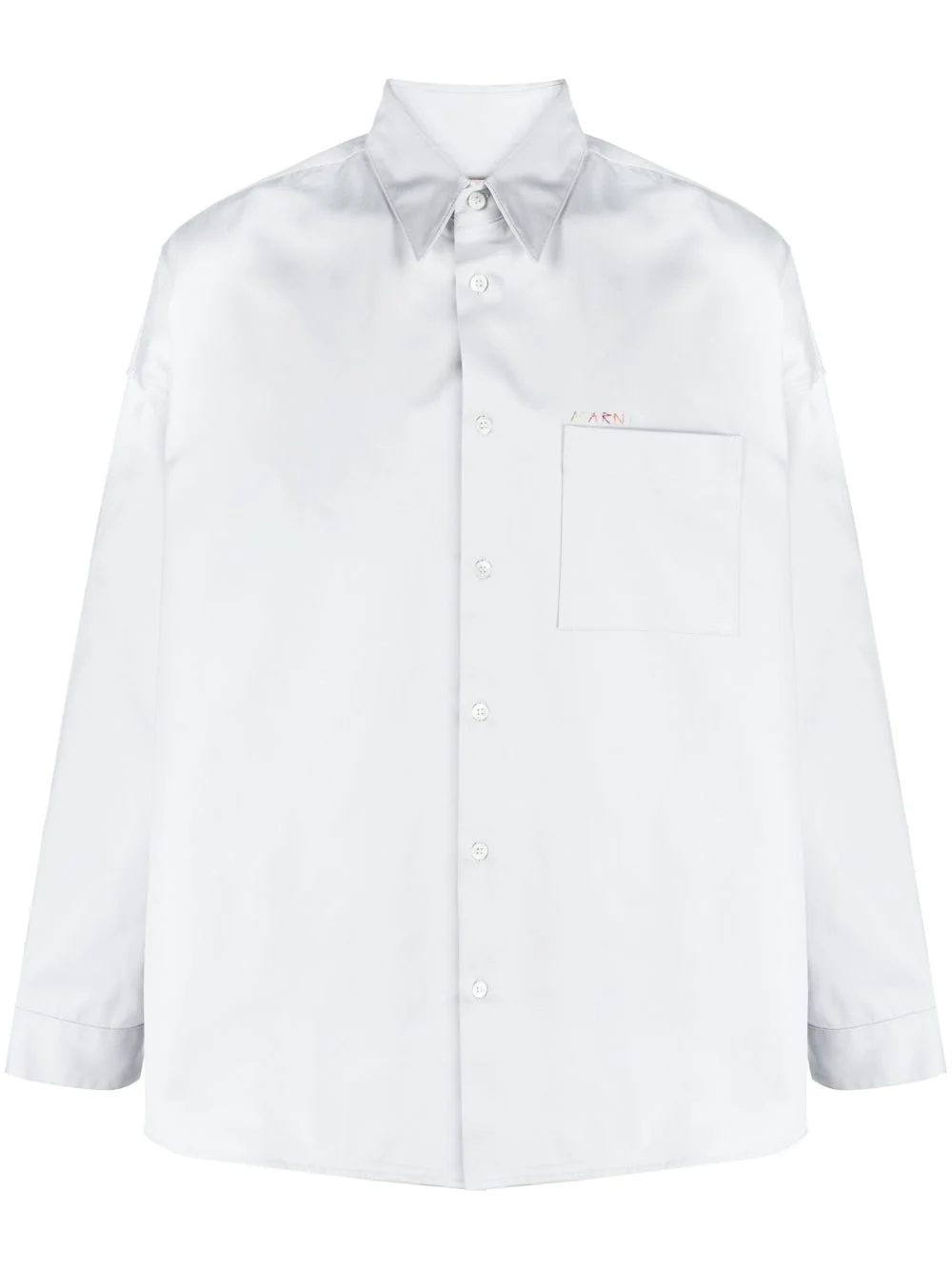 logo-embroidered cotton shirt Highlights - Grey - Cotton - Embroidered logo at the chest - Classic collar - Front button fastening - Buttoned-cuff sleeves - Long sleeves - Chest patch pocket - Straight hem Imported Composition Cotton 100% SIZE & FIT Model measurements Height 6 ft 1 in(1.85 m) Bust/Chest 38.58 in(98 cm) Hips 37 in(94 cm) Waist 30.31 in(77 cm) FittingInformation Designed for a boxy fit, intended for a loose fit throughout Made from a midweight non-stretch fabric This piece fits true to size – take your usual size Washing instructions Machine Wash