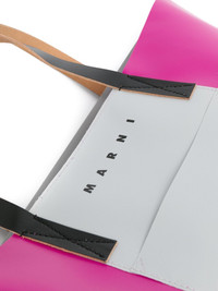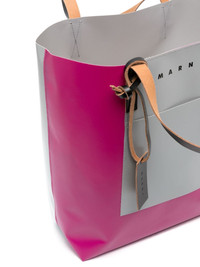 engraved-logo panelled tote This tote bag from Marni boasts a bold colour-block design that is decorated with a logo print to the front. Highlights - Magenta - Light grey - Calf leather - Colour-block design - Logo print to the front - Logo tag - Open top - Two top handles - Slip pocket to the front - Main compartment Made in Italy Composition Outer: Calf Leather 100%, Polyurethane 64%, Polyester 36% SIZE & FIT Model measurements Height 6 ft 2 in(1.87 m) Bust/Chest 36.41 in(92.5 cm) Hips 35.43 in(90 cm) Waist 29.52 in(75 cm) Measurement DEPTH 5.51 in(14 cm) HEIGHT 15.35 in(39 cm) STRAP 7.48 in(19 cm) WIDTH 12.59 in(32 cm)