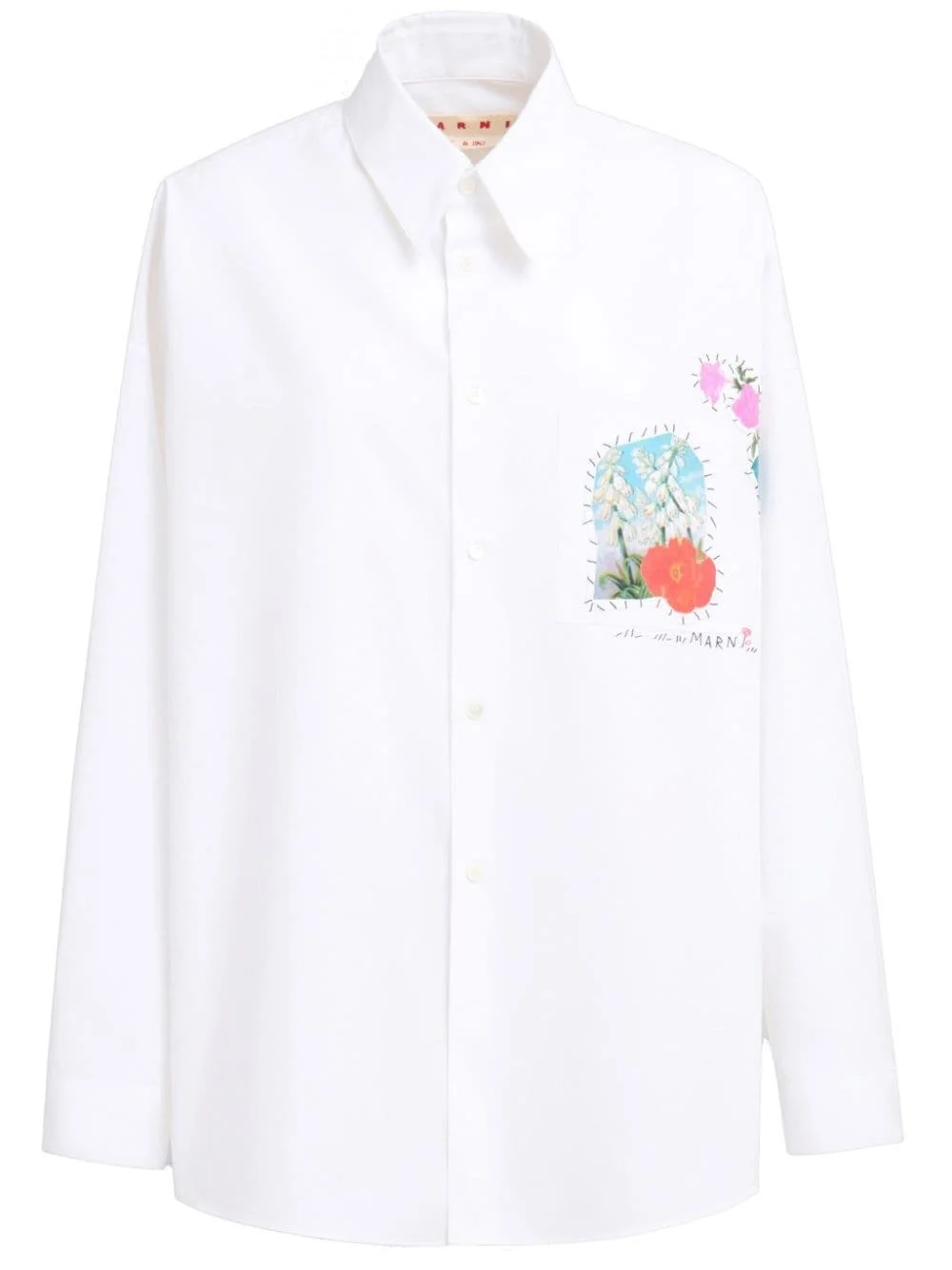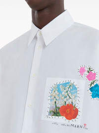 floral-applique cotton shirt Highlights - White - Cotton - Poplin texture - Floral applique - Embroidered logo at the chest - Classic collar - Front button fastening - Drop shoulder - Long sleeves - Buttoned cuffs - Straight hem Made in Italy Composition Cotton 100%