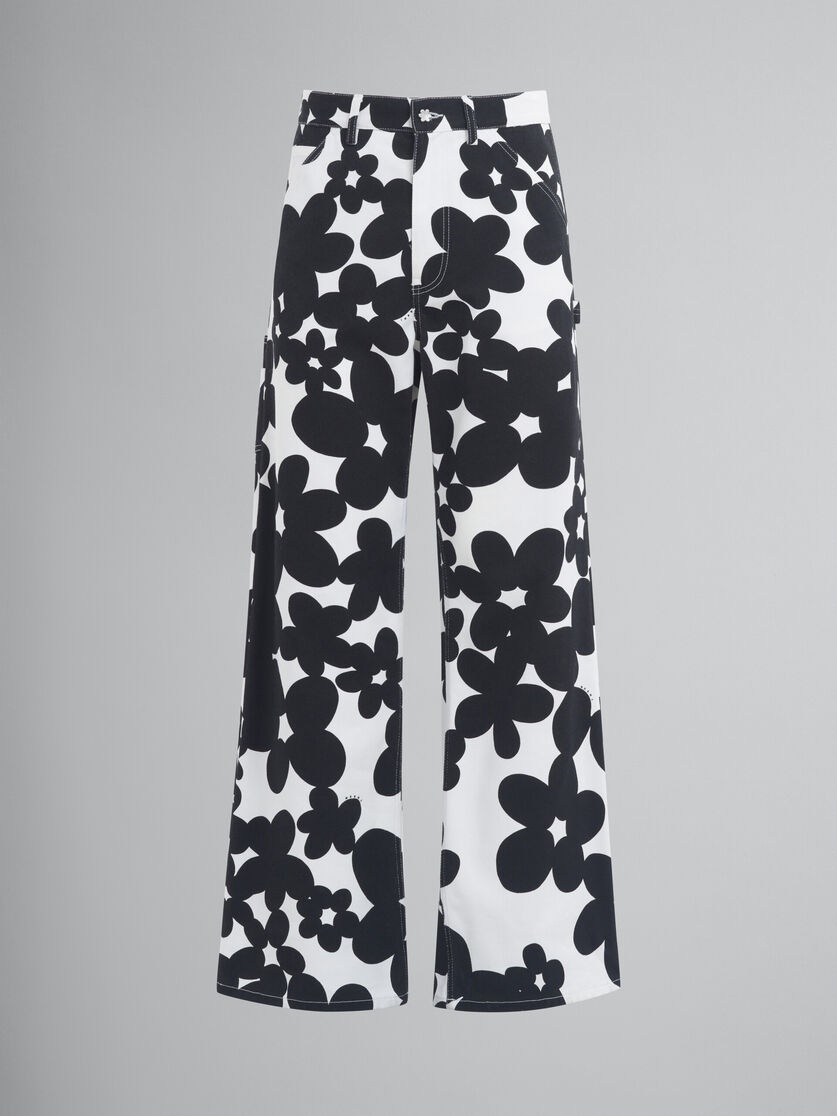 Cotton gabardine cargo trousers, with seasonal macro floral Dillies motif printed all over. Regular fit. Side pockets, patch pockets on the back, and patch pocket on the left leg. Zip and flower button closure. Made in Italy MODEL PUMU0287A0UTC462DIN99 FIT The model is 6' 1". The model is wearing size 48 IT. COMPOSITION Primary Fabric: 100% Cotton Woven - Pocket Lining: 100% Cotton Woven
