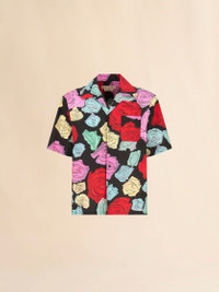 Short-sleeved bowling shirt made from organic cotton poplin. Printed with this season's Orion multicoloured rose pattern, created using a special scraping technique on wet paint. Boxy fit with chest pocket. Button closure. Can be worn with a bowling collar or fully buttoned up. Made in Italy MODEL CUMU0213A5UTC506ORN99 COMPOSITION Primary Fabric: 100% Cotton Woven