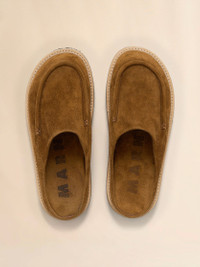 Suede sabot with raised stitching on the upper. Natural para rubber sole and leather welt. Finished with an embossed Marni logo on the edge. MODEL SBMR004004P524600M30 COMPOSITION Upper: 100% Calf Leather - Lining: 100% Calf Leather - Inside: 100% Calf Leather - Sole: 100% Rubber