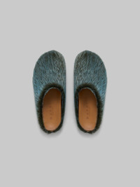 BLUE-GREY LONG HAIR CALFSKIN FUSSBETT SABOT